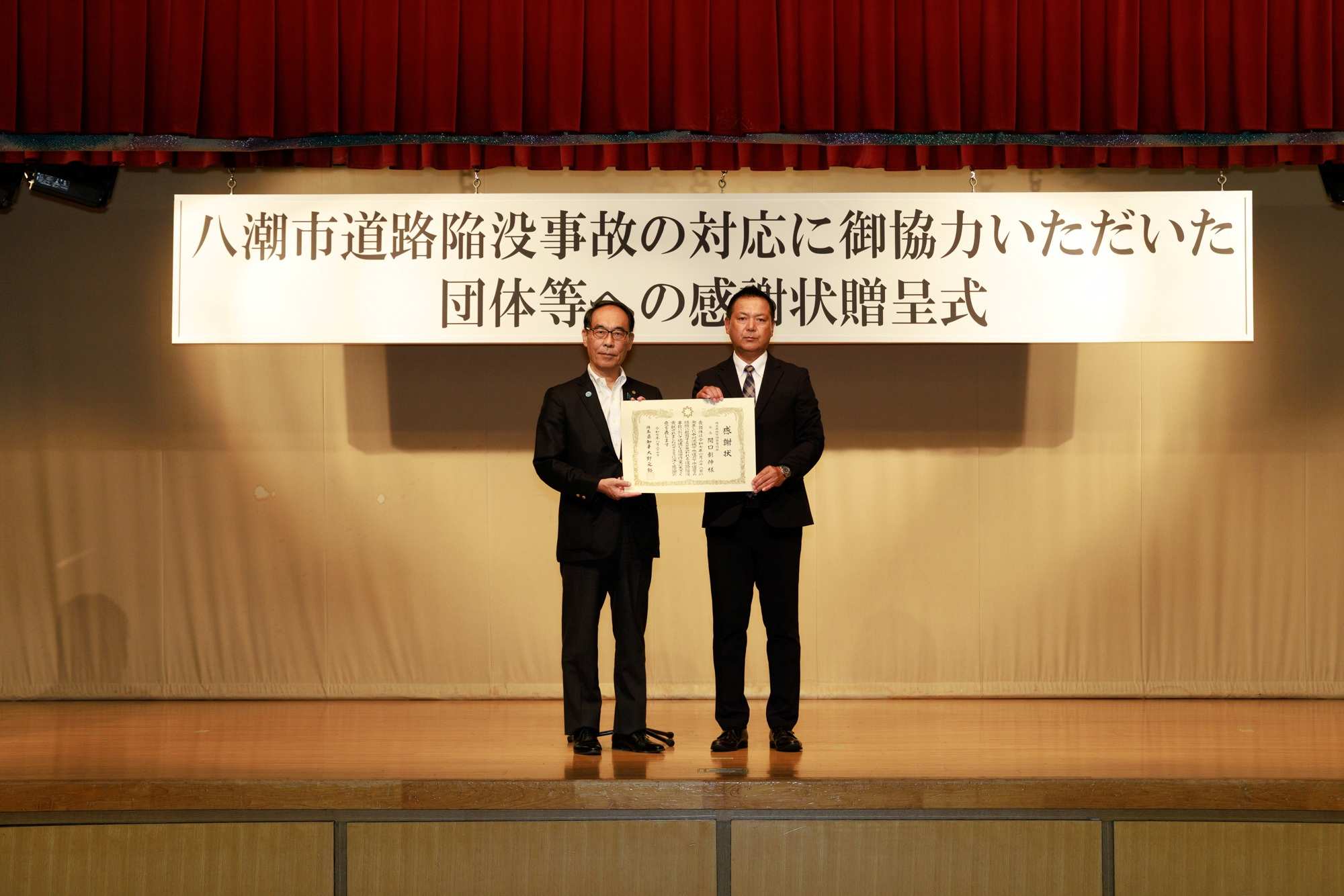 令和7年1月28日に発生しました「八潮道路陥没事故」の災害支援業務に対して,埼玉県より感謝状を頂きました。